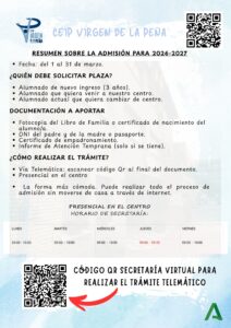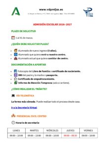 RESUMEN ADMISIÓN ESCOLAR 26-27 –> AQUÍ MÁS INFORMACIÓN –> AQUÍ